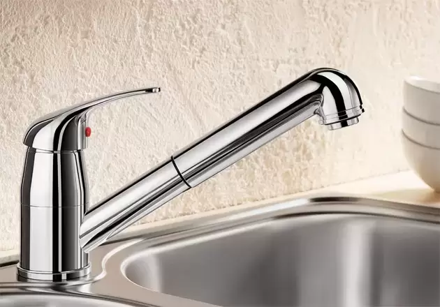 Смеситель Blanco Daras-S изготавливается из высококачественной нержавеющей стали с хромированием. Этот материал отличается повышенной прочностью, устойчивостью к воздействию высоких температур, легкостью в уходе. Однорычажная модель очень удобна в использовании: регулировать напор воды можно одной рукой. За смешивание горячей и холодной воды отвечает надежный, долговечный и легко заменяемый керамический картридж. Современный дизайн модели сочетается с компактными размерами. Высота излива составляет всего 11 см, а длина — 21,4 см: он подходит для моек с небольшими чашами. Вымыть посуду любого размера поможет выдвижной излив со шлангом в нейлоновой оплетке. Кроме того, вы без труда сможете наполнять глубокие кастрюли или вазы, а также использовать его вместе с мойкой с двумя чашами. Дополнительное удобство обеспечивает угол поворота излива на 90 градусов. Модель оборудована клапаном, который препятствует попаданию воды обратно в водопровод: благодаря этому напор воды остается постоянным.