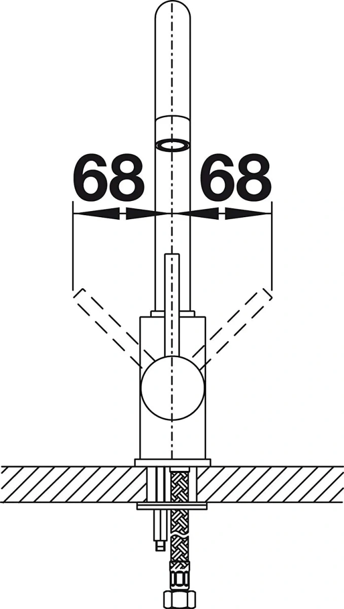 Модель Blanco MIDA 526649 устанавливается привычным способом: на бортик мойки или ванной в предназначенные для этого отверстия (они могут быть вырезаны производителями заранее, но если нет, при достаточной ширине можно добавить их самостоятельно). Гибкая подводка позволяет расположить сантехнику в любом удобном месте, при этом нужно учитывать несколько важных нюансов: для максимальной надежности лучше выбирать сильфонные рукава, нельзя использовать ее вместо стационарного водопровода, только как соединительный элемент для крана.