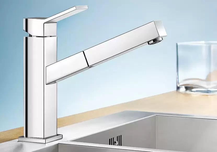 Специальная насадка позволяет выдвинуть излив как маленький шланг и направить струю в слишком высокую кастрюлю, которая не помещается под стационарным краном, на овощи в раковине, на загрязнения в неудобных уголках мойки, которые нужно удалить и т.д. Благодаря особой конструкции вы можете также направить воду из раковины в ванну или из одной чаши мойки в другую одним поворотом крана в нужную сторону. Дополнительная деталь, которая повышает комфорт использования, — аэратор. Он делает поток воды мягче, насыщая его кислородом, таким образом дополнительно уменьшая ее расход: объем струи увеличивается за счет воздуха, а не за счет повышения напора из водопровода.