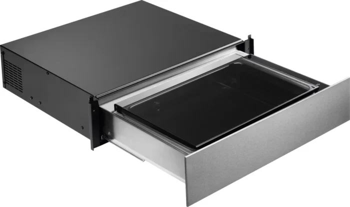 AEG KDE911423M — выдвижной ящик для вакуумной упаковки. Фронт модели выполнен из нержавеющей стали с покрытием AntiFingerPrint, защищающим внешнюю поверхность от следов отпечатков пальцев. Сенсорная панель управления и светодиодный дисплей повышают уровень комфорта и позволяют наиболее точно контролировать работу устройства.