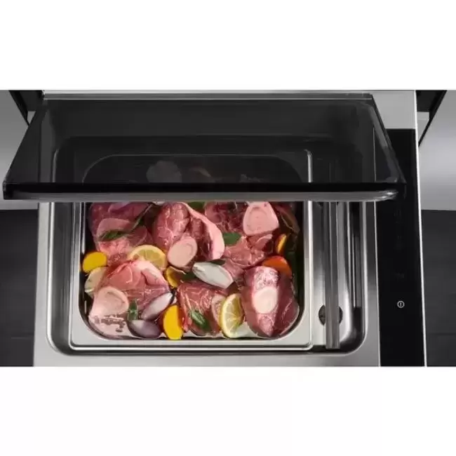 Вакуумный упаковщик AEG KDK911423T — специальный прибор для работы с низкими температурами по технологии Sous-Vide, предназначенный для максимального сохранения полезных веществ в продуктах. Стильный цвет нержавеющей стали известного бренда AEG с компактными габаритами (59, 5 см ширина и 13.9 см высота) позволит органично встроить его в кухонный дизайн.