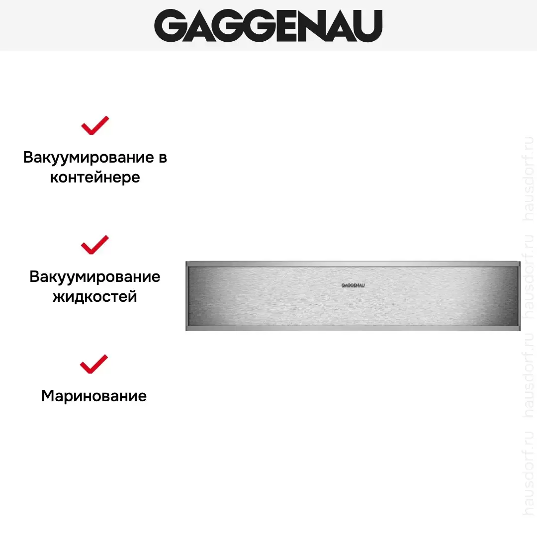 Вакуумный упаковщик Gaggenau DV461110 — встраиваемое устройство, способное увеличить срок годности продуктов и значительно улучшить качество хранения. Модель изготовлена на собственном заводе Гаггенау в Словакии. Она незаметна в интерьере: фасад из закаленного стекла цвета нержавеющей стали не имеет ручки, но внизу есть выемка, которая служит для открывания и закрывания. Встраиванию в нишу или в колонну с другой техникой способствуют стандартные габариты — ширина 59 см, глубина 51 см, высота 13,7 см. Камера объемом 7 литров с внутренней поверхностью из нержавеющей стали выдерживает нагрузку до 10 кг. Мощный насос быстро удаляет воздух из любых емкостей. Для запайки пакетов предназначается планка с антипригарным покрытием. Для дополнительной защиты служит стеклянная крышка, которая открывается после завершения процесса автоматически.