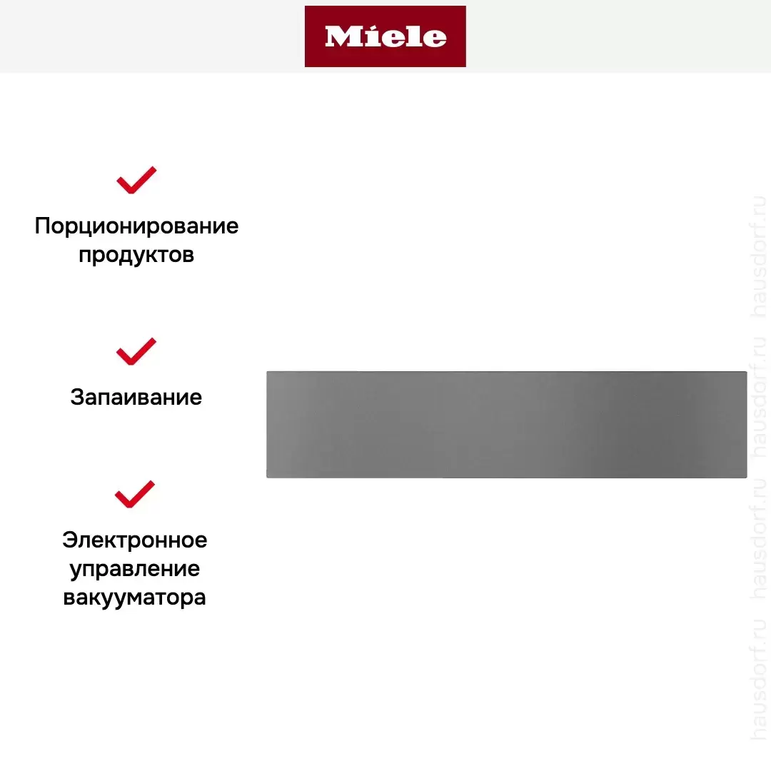 Вакуумный упаковщик бренда Miele позволяет облегчить многие кухонные процессы: быстро упаковать продукты и увеличить их срок хранения за счет вакуумирования, замариновать ингредиенты для различных блюд, консервировать овощи или фрукты, провести грамотную подготовку к приготовлению Sous-Vide.