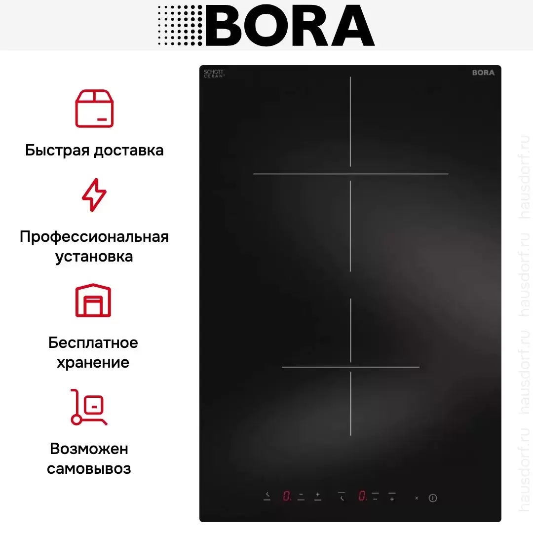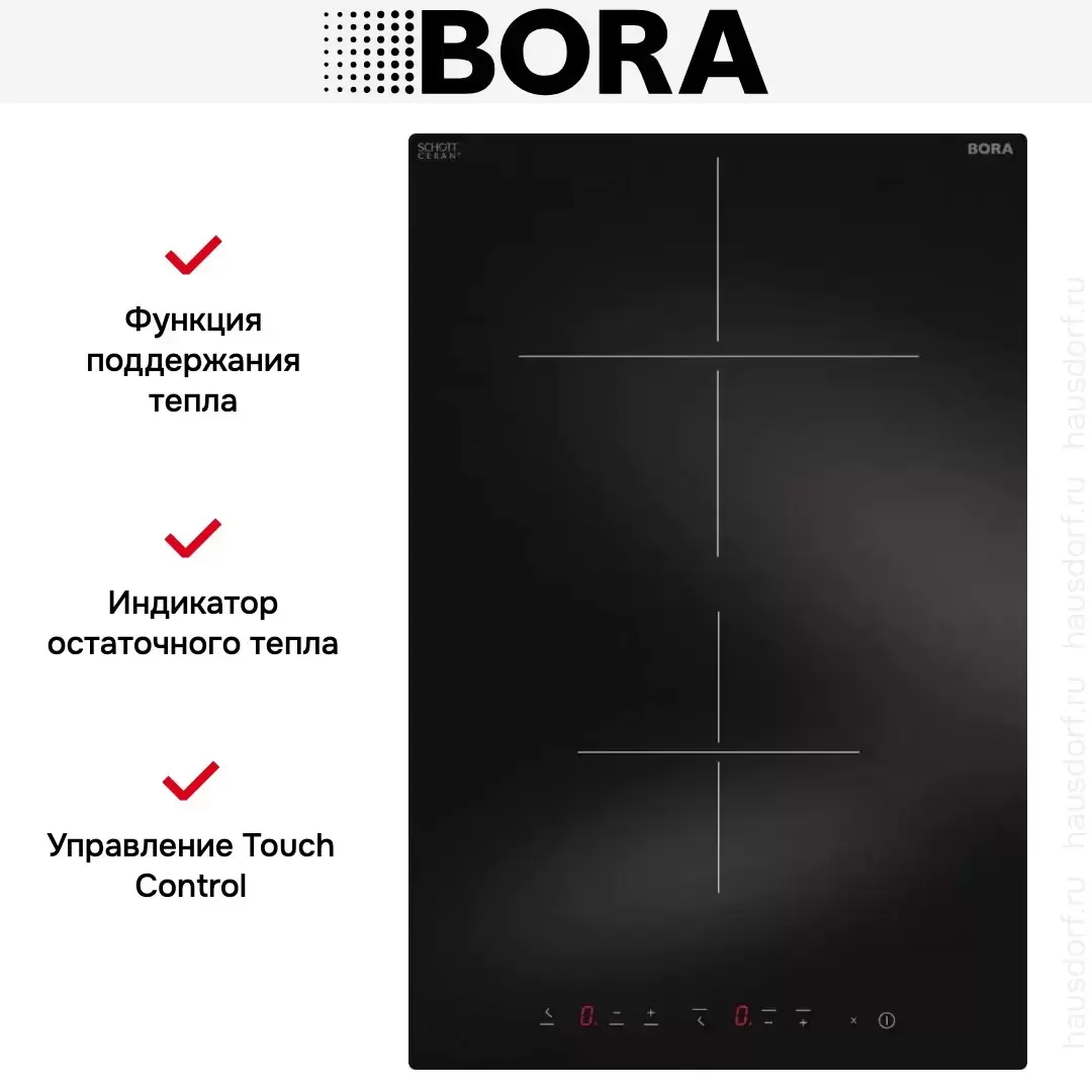 BORA CI11 — независимая индукционная варочная панель с двумя зонами нагрева. Рабочая поверхность модели выполнена из стеклокерамики SCHOTT CERAN®, которая характеризуется высокой механической прочностью. Для контроля времени приготовления предусмотрен электронный таймер, автоматически выключающий конфорку по истечении заданного времени.