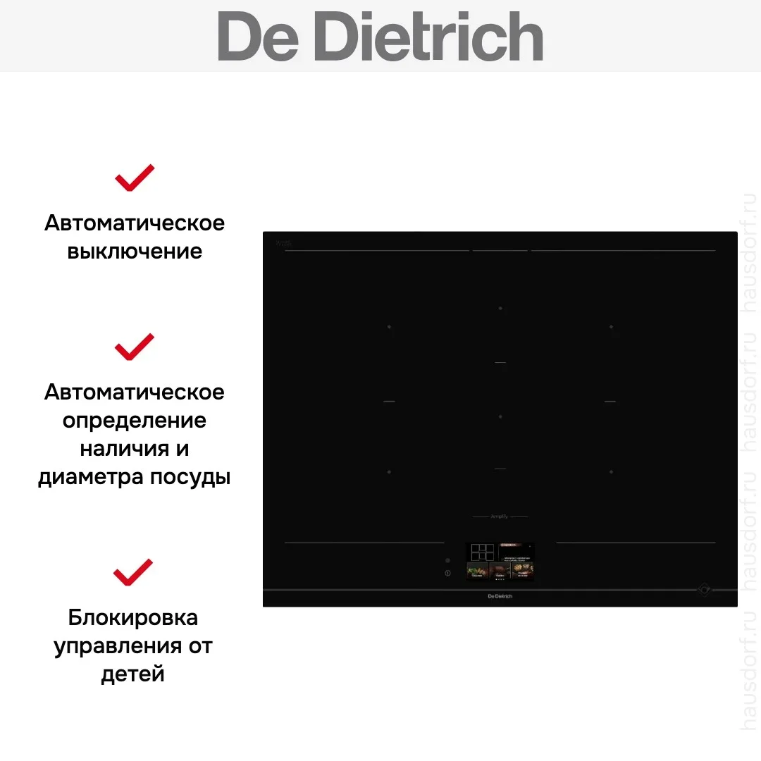 варочная панель De Dietrich DPI5650AB создана для тех, кто ценит лаконичный стиль и продуманную функциональность на кухне. Ее строгий черный корпус выгодно смотрится в интерьере и легко сочетается с мебелью в любом оттенке. Гладкое стеклокерамическое покрытие придает изделию премиальный вид и обеспечивает простоту ухода. Эстетика сочетается с практичностью: поверхность устойчива к воздействию высоких температур и имеет ровные контуры для аккуратной встройки.