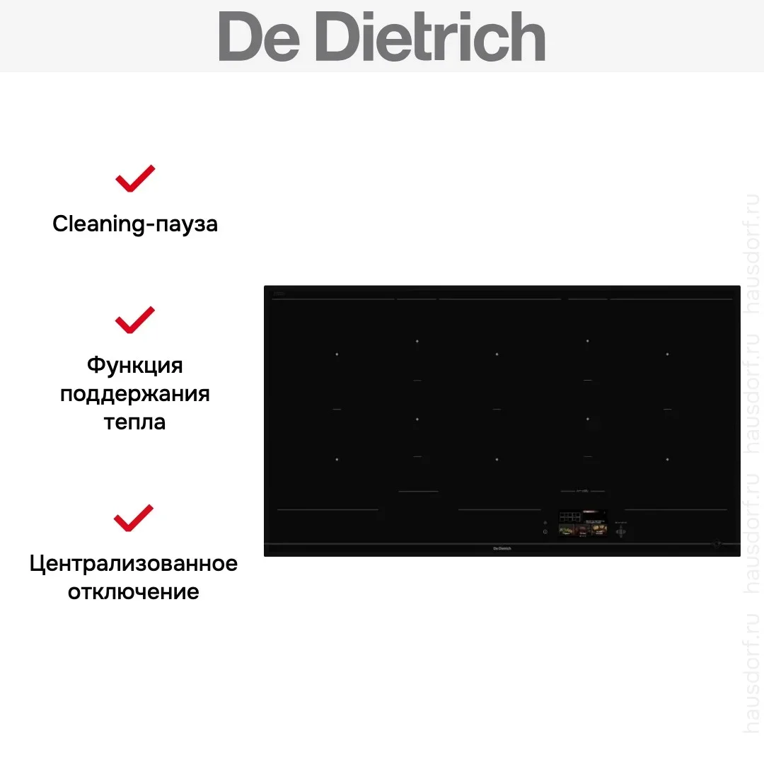 Индукционная варочная панель De Dietrich DPI595ABT — стильное решение для тех, кто ценит точность и эргономику на кухне. Я рекомендую эту модель за продуманный дизайн Philharmonie в элегантном черном цвете и за плоскую стеклокерамическую поверхность, которая органично впишется в современную мебель. Габариты 6×90.5×51.5 см и ниша для встраивания 90×49 см делают панель удобной для замены старой техники или новой установки. Плоская рамка и фронтальное сенсорное управление обеспечивают аккуратный вид и простоту ухода.