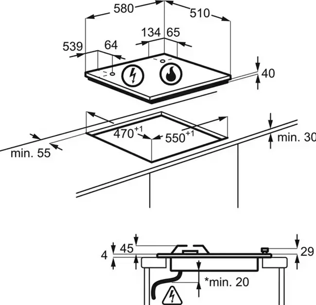 Варочная панель Electrolux EGE6172NOK — стильное сочетание черного закаленного стекла и практичных материалов, которое придет на смену устаревшим столешницам и подчеркнет современную кухонную зону. Тонкий профиль высотой всего 4,4 см делает изделие почти невесомым визуально, а отсутствие рамки позволяет легко интегрировать поверхность в разные стили — от минимализма до лофта; нержавеющая фурнитура добавляет аккуратных металлических акцентов, а чугунная решетка обеспечивает устойчивую опору для посуды и долговечность при ежедневной эксплуатации. Комбинированная конструкция объединяет два газовых горелки и две электрические Hi‑Light зоны, что предоставляет гибкость для любых рецептов: мощные номиналы распределены так, чтобы обеспечить и быстрый нагрев крупных кастрюль, и точную регулировку для тушения. Общая мощность конфорок достигает 7,6 кВт; передняя левая панель с диаметром 210 мм и мощностью 2,7 кВт подойдет для больших емкостей, задняя правая диаметром 180 мм рассчитана на средние задачи, задняя левая — компактная 70 мм (1,9 кВт) для соусов, а передняя правая 145 мм (1,2 кВт) хороша для медленного прогрева. Управление реализовано механически с боковым размещением поворотных переключателей — традиционный и понятный способ контроля, дополненный электроподжигом для быстрого розжига и функцией газ‑контроля, повышающей безопасность. Прибор предназначен для независимой накладной установки; для установки предусмотрены точные габариты: внешние 4,4×58×51 см, а размеры ниши для встраивания составляют 55,1×47,1 см, что облегчает подбор столешницы и монтаж. Панель адаптирована для работы как на природном газе G20, так и на сжиженном топливе — в комплекте идут форсунки для баллонного газа, а подсоединение возможно через стандартный фитинг 1/2′. Электрические параметры — напряжение 220-240 В, частота 50-60 Гц и потребляемая мощность сети 3000 Вт; длина кабеля 1,1 м, что дает запас для подключения. Легкая по массе и удобная в транспортировке, поверхность весит 8,7 кг (брутто 9,3 кг), а артикул 949 760 070 поможет быстро найти нужную комплектацию и сервисную информацию. В целом дизайн и функционал направлены на удобство повседневного использования: прочное стекло легко очищается, чугунная подставка выдерживает интенсивную нагрузку, боковые механизмы управления не мешают рабочей поверхности, а газ‑электрическая комбинация делает этот вариант идеальным для тех, кто ценит универсальность и надежность при компактном размещении на кухне.
