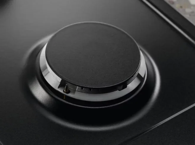 Варочная панель Electrolux EGS6436RK — это стильное и функциональное газовое устройство, сочетающее в себе классическую надёжность и современный дизайн. Модель выполнена в глубоком чёрном цвете с прямыми краями, что придаёт ей строгую элегантность и позволяет гармонично вписываться в различные кухонные интерьеры. Ярким акцентом выступает фурнитура медного цвета, добавляющая нотку роскоши и винтажного шарма, а массивные чугунные решётки подчёркивают практичность и долговечность конструкции.
