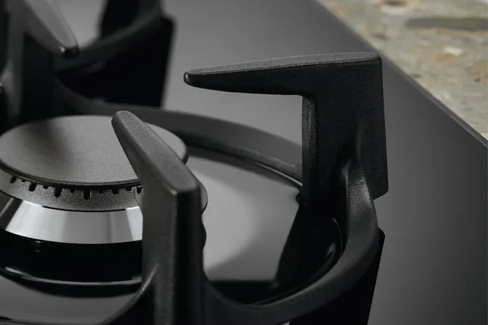 Поверхность оснащена несколькими газовыми горелками разной мощности, что позволяет одновременно готовить блюда с различными требованиями к нагреву — от интенсивного кипячения до деликатного томления. Прочная чугунная решётка обеспечивает устойчивое размещение посуды любого типа и веса, а продуманная конструкция горелок гарантирует равномерное распределение пламени и эффективное сгорание газа.