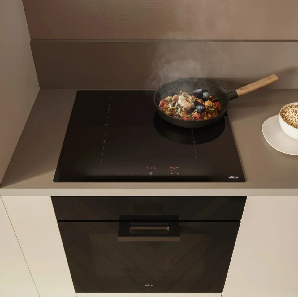 Четыре индукционные зоны обеспечивают равномерное распределение тепла и быструю реакцию на изменения мощности. Автоматическое распознавание посуды оптимизирует расход энергии и снижает потери тепла. Функция объединения зон удобна для использования больших сковород и гриля, когда нужна единая большая поверхность нагрева.