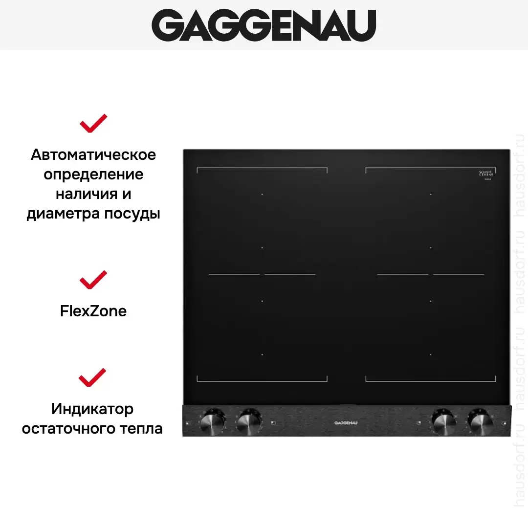 Варочная панель Gaggenau VI 262-120 оснащена системой защиты на время отпуска, что обеспечивает безопасность использования. Автоматическое распознавание посуды добавляет комфорт эксплуатации.