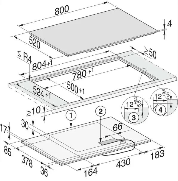 | Конфорок индукционных | 4 | |