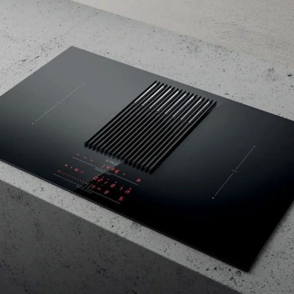 Встроенная вытяжка обеспечивает отвод или рециркуляцию воздуха, поэтому прибор сочетает функции варочной поверхности и эффективной системы очистки. В комплекте идут алюминиевый жироулавливающий фильтр и керамические угольные фильтры длительного использования, что снижает необходимость частой замены расходников. Производительность до 480 м³/ч позволяет быстро удалять пар и запахи, а уровень шума от 41 до 67 дБ делает работу достаточно комфортной даже при высокой мощности. Класс энергопотребления A+ гарантирует низкие эксплуатационные расходы.