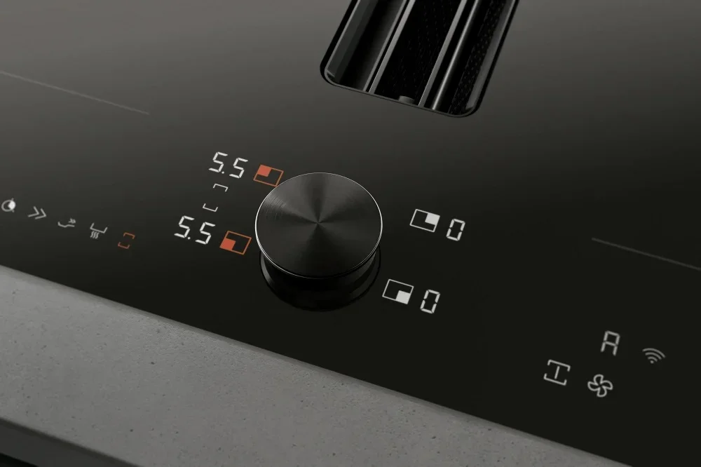 Техника оснащена интегрированной системой отвода и рециркуляции воздуха с мощным BLDC-двигателем. Максимальная производительность составляет 636 м³/ч в интенсивном режиме, а автоматическая регулировка мощности обеспечивает эффективное удаление запахов и пара. Для удобства предусмотрен съемный жироулавливающий фильтр, который можно мыть в посудомоечной машине, а индикатор загрязнения своевременно напомнит о необходимости обслуживания. Три уровня мощности, интервальная вентиляция и остаточный ход гарантируют свежесть воздуха даже после завершения приготовления. Уровень шума варьируется от 61 до 74 дБ, что позволяет использовать устройство без лишнего дискомфорта.