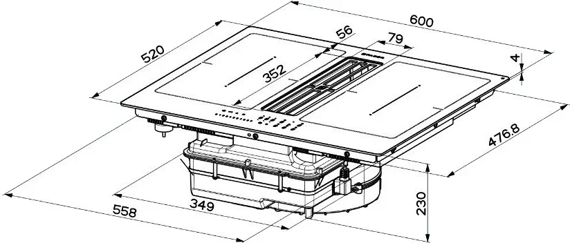 Индукционная технология обеспечивает мгновенный нагрев, высокую энергоэффективность и безопасность: тепло генерируется исключительно в нижней части совместимой посуды, а стеклокерамическая поверхность вне зоны контакта остаётся прохладной. Управление осуществляется с помощью электронной системы с фронтальным расположением элементов: цифровой дисплей отображает текущие параметры, а сенсорный слайдер TouchSlider позволяет плавно регулировать как мощность конфорок, так и скорость работы вытяжки одним движением пальца.