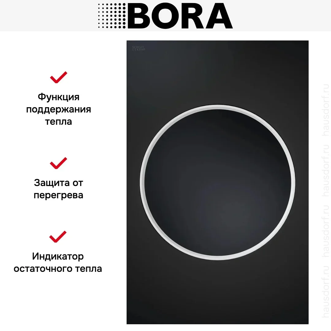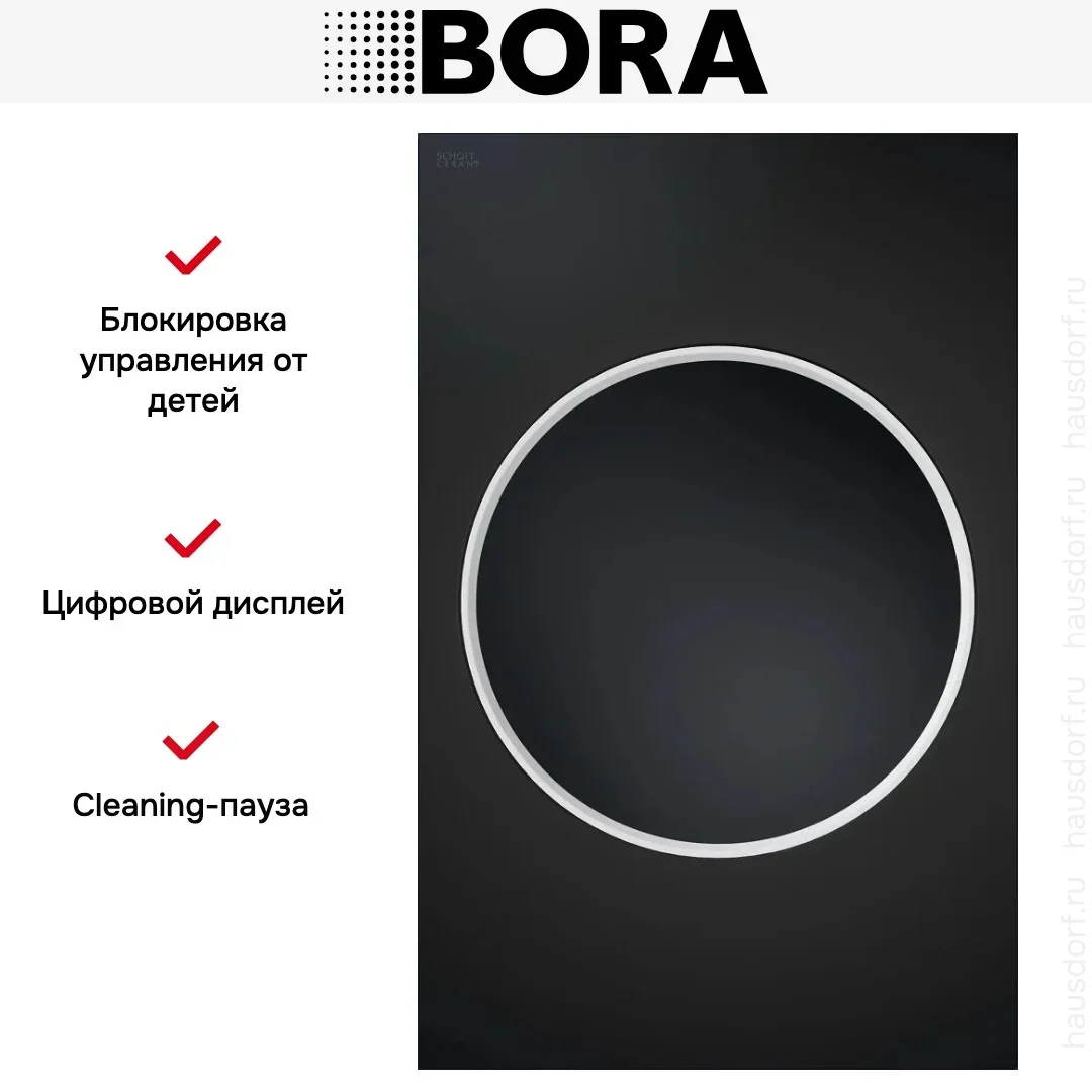 Варочная панель BORA CKIW — компактная индукционная однозонная модель в черном исполнении с дизайном Classic 2.0, рассчитанная на заподлицо встраивание. Высота устройства 11.6 см, ширина 32.7 см и глубина 51.5 см дают точные габариты для небольших кухонь. Для установки требуется ниша 30.2×49 см, а сам монтаж предполагает заподлицо финиш. Ширина встраивания 30.2 см и глубина 49 см упрощают подготовку столешницы под конкретный проём.
