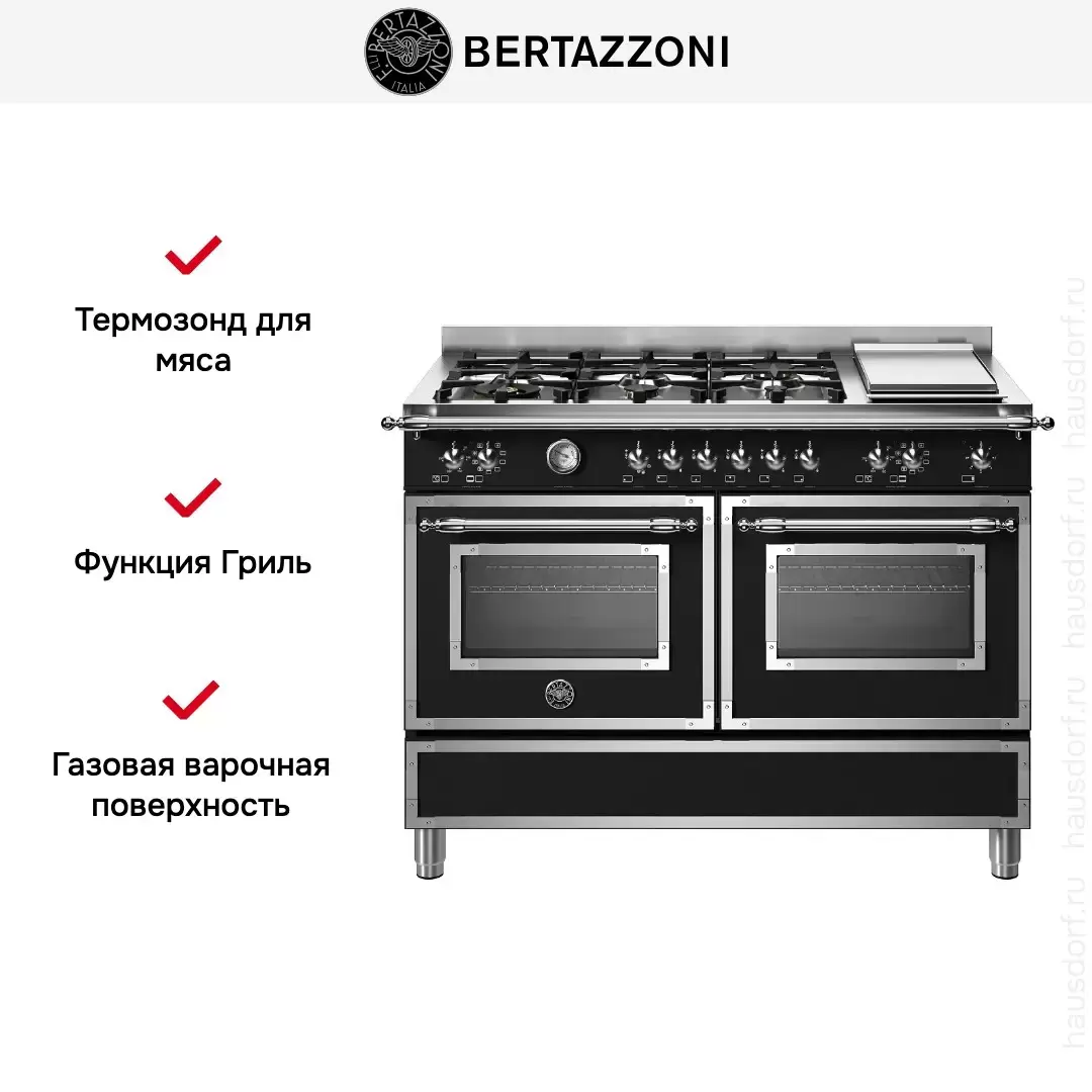 Комбинированный варочный центр Bertazzoni HER126G2ENET оснащен газовой варочной поверхностью и двойным электрическим духовым шкафом. Газовая панель из нержавеющей стали оборудована 6 конфорками, одна из которых имеет два контура. WOK конфорка предназначена для ускоренного разогрева, использования посуды с круглым дном и приготовления блюд в азиатском стиле. Теппан зона нагрева позволит готовить без использования посуды.