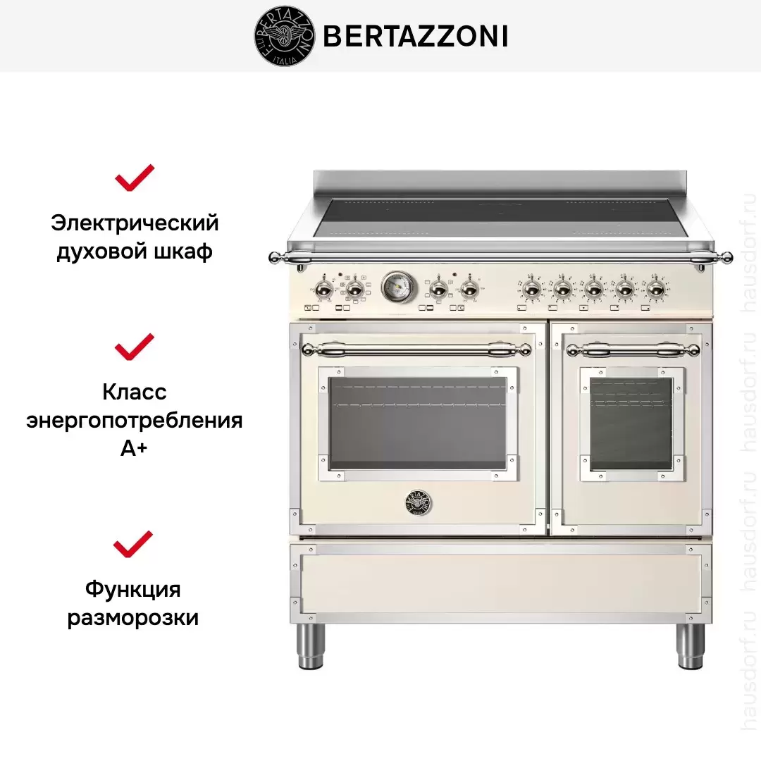 Электрический варочный центр Bertazzoni HER95I2EAVT оснащен индукционной варочной поверхностью и электрическим духовым шкафом. Индукционная панель из стеклокерамики оборудована 5 конфорками и обеспечивает быстрый, равномерный прогрев дна посуды, благодаря функции Booster мощность одной из них можно увеличить. Каждая зона нагрева имеет 9 уровней мощности и дополнена датчиками остаточного тепла.
