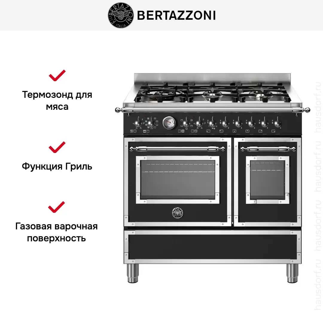Электрический духовой шкаф разделен на две зоны объемом на 69 и 38 литра. Духовка работает в 11 режимах, включая конвекцию и электрический гриль для различных блюд. Стенки камеры покрыты специальной эмалью, на поверхности которой загрязнения и остатки пищи растворяются во время приготовления. Модель принадлежит к коллекции Heritage, черный матовый корпус дополнен рамкой и фурнитурой из нержавеющей стали.