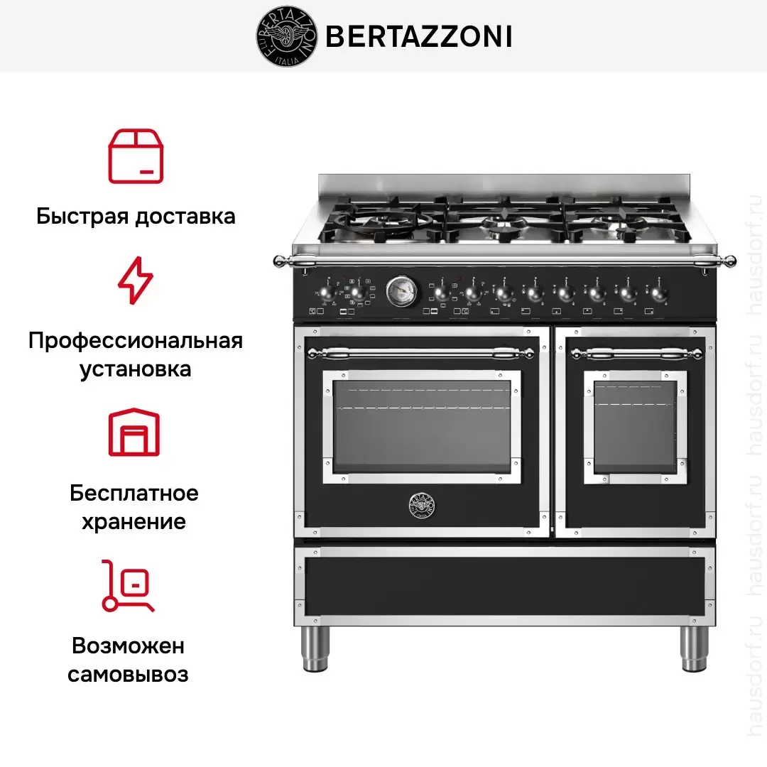 Комбинированный варочный центр Bertazzoni HER96L2ENET оснащен газовой варочной поверхностью и двойным электрическим духовым шкафом. Газовая панель из нержавеющей стали оборудована 6 конфорками, две из которых имеют два контура. WOK конфорка предназначена для ускоренного разогрева, использования посуды с круглым дном и приготовления блюд в азиатском стиле. Для удобства предусмотрен электроподжиг.