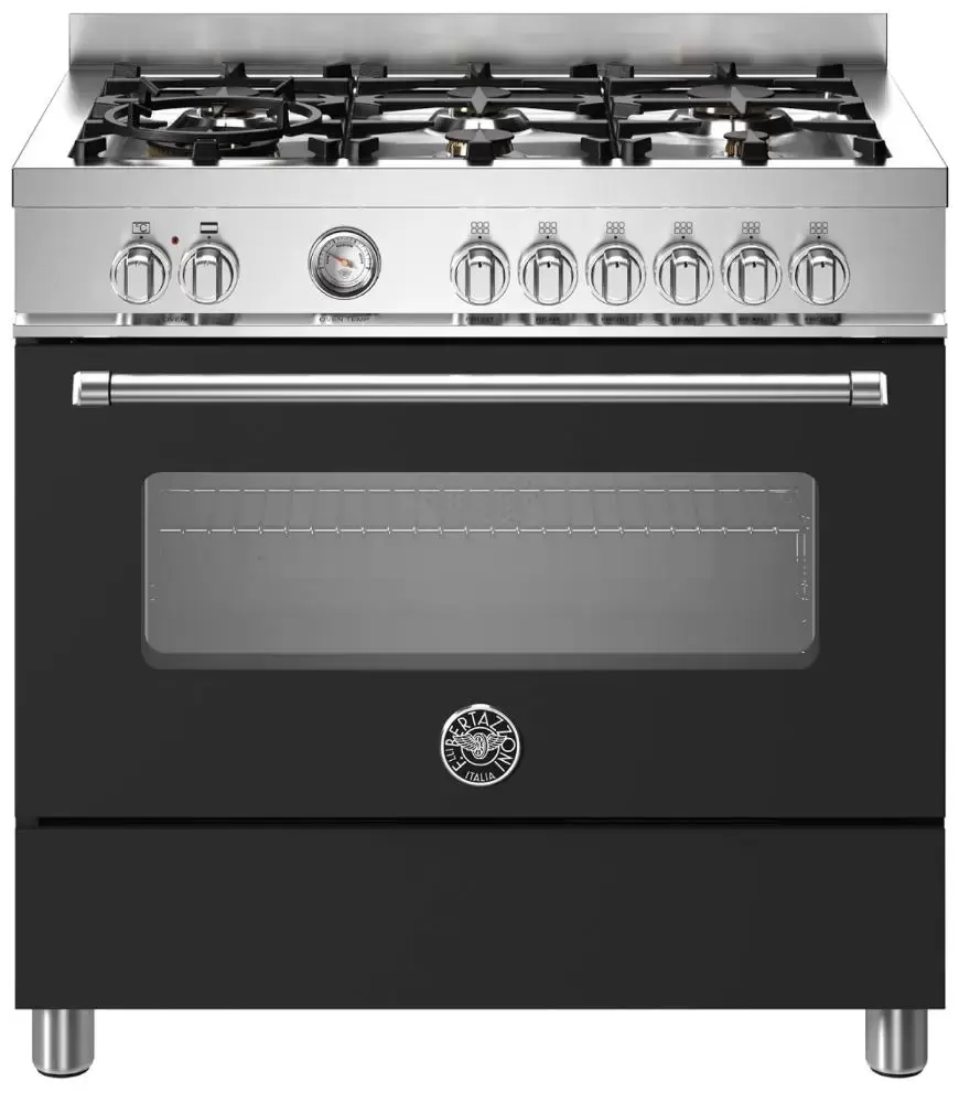 Комбинированный варочный центр Bertazzoni MAS96L1ENET в матовом черном цвете оснащен газовой варочной поверхностью и электрическим духовым шкафом. Газовая панель из нержавеющей стали оборудована 6 конфорками, две из которых имеют два контура. WOK конфорка предназначена для ускоренного разогрева, использования посуды с круглым дном и приготовления блюд в азиатском стиле. Для удобства предусмотрен электроподжиг.