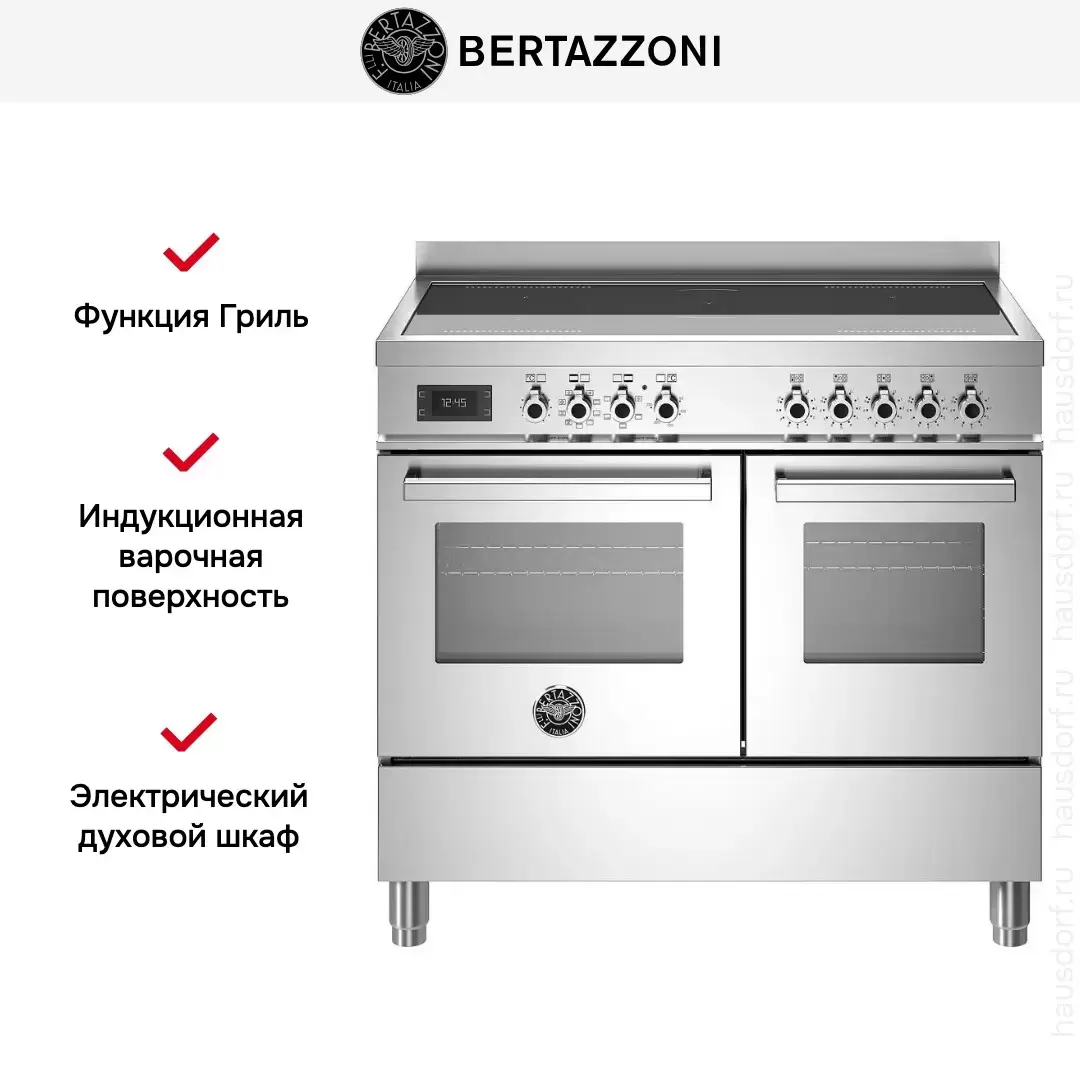 Электрический варочный центр Bertazzoni PRO105I2EXT оснащен индукционной варочной поверхностью и электрическим духовым шкафом. Индукционная панель из стеклокерамики оборудована 5 конфорками и обеспечивает быстрый и равномерный прогрев дна посуды, а благодаря функции Booster мощность одной из них можно увеличить для сокращения времени закипания. Панель управления выполнена в ретро стиле, но дополнена электронным дисплеем и регулировкой режимов работы. Каждая зона нагрева имеет 9 уровней мощности и дополнена датчиками остаточного тепла.