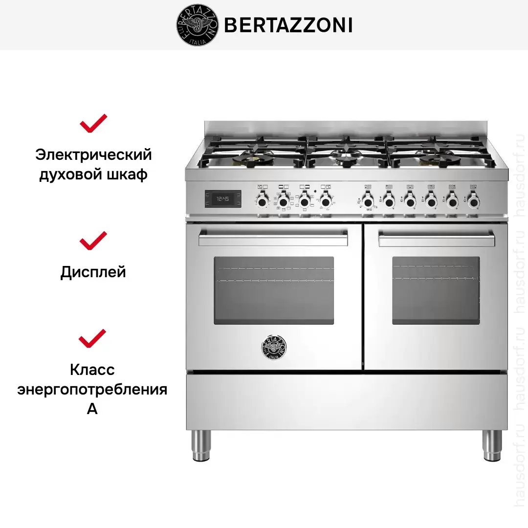 Комбинированный варочный центр Bertazzoni PRO106L2EXT оснащен газовой варочной поверхностью и двойным электрическим духовым шкафом. Газовая панель из нержавеющей стали оборудована 6 конфорками, две из которых имеют два контура. WOK конфорка предназначена для ускоренного разогрева, использования посуды с круглым дном и приготовления блюд в азиатском стиле. Для удобства предусмотрен электроподжиг.