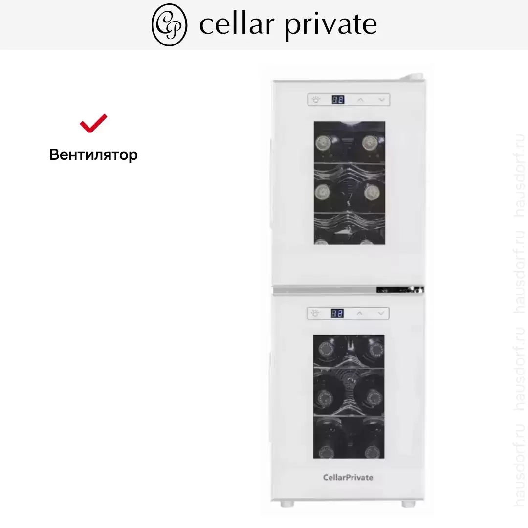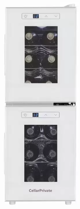 Винный холодильник CellarPrivate CP012-2W имеет две температурные зоны, в которых одновременно можно хранить разные сорта алкоголя и выставлять разные сочетания настроек. Он устанавливается отдельно, что удобно, если у вас есть специальное помещение — кладовая, погреб и т.д. Благодаря компактным размерам данная модель — отличный выбор для офиса, гостиничного номера. Количество бутылок, которое можно разместить с учетом полной комплектации и из расчета объема бутылки 0,75 л, — 12 шт.