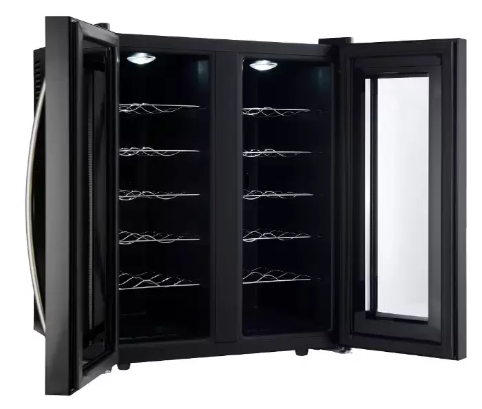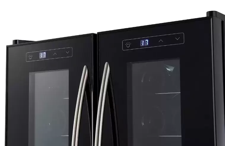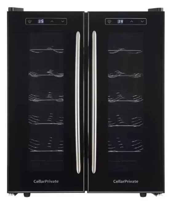 Две камеры в технике такого типа встречаются реже, чем в обычных холодильниках, эти приборы чаще всего предназначены для ресторанов или крупных коллекционеров. Охлажденный воздух поступает внутрь благодаря термоэлектрическому элементу. Размораживается автоматически, поэтому не нужно вручную удалять иней со стенок и поддерживать тем самым оптимальные условия. Общий диапазон температур, которые можно установить: 11-18 градусов.