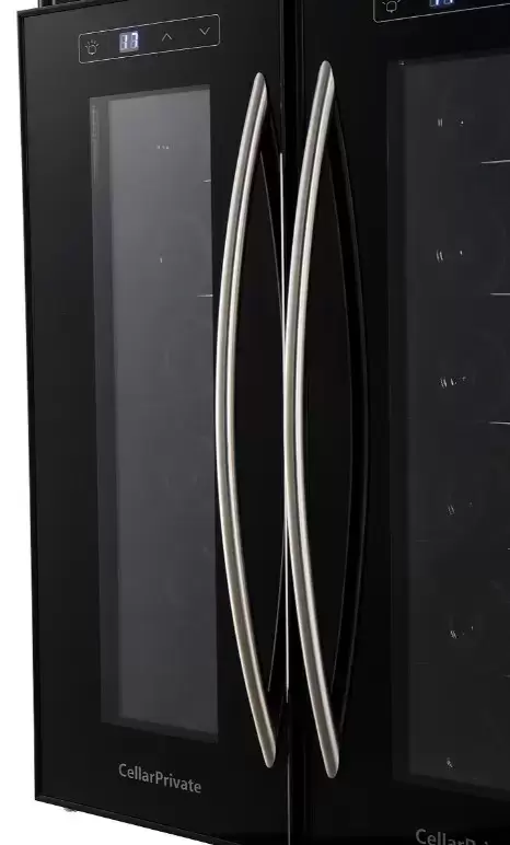 Винный холодильник CellarPrivate CP024-2T имеет две температурные зоны, в которых одновременно можно хранить разные сорта алкоголя и выставлять разные сочетания настроек. Он устанавливается отдельно, что удобно, если у вас есть специальное помещение — кладовая, погреб и т.д. Благодаря компактным размерам данная модель — отличный выбор для офиса, гостиничного номера. Количество бутылок, которое можно разместить с учетом полной комплектации и из расчета объема бутылки 0,75 л, — 24 шт.