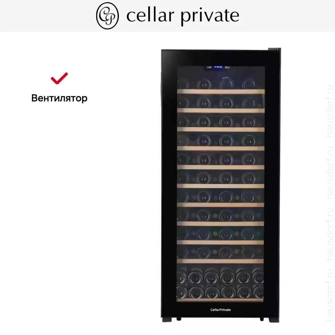 Винный холодильник CellarPrivate CP102 имеет одну температурную зону, в которой можно разместить бутылки и единовременно выставить только одну комбинацию настроек. Он устанавливается отдельно, что удобно, если у вас есть специальное помещение — кладовая, погреб и т.д. Количество бутылок, которое можно разместить с учетом полной комплектации и из расчета объема бутылки 0,75 л, — 86 шт.