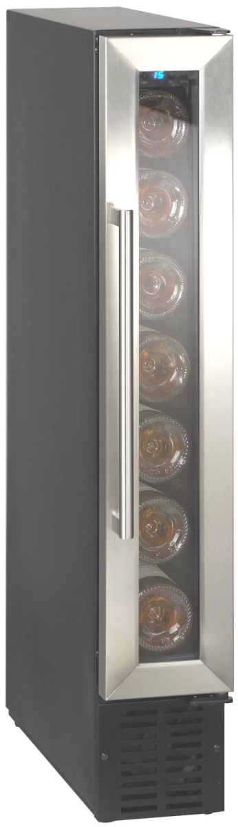 Винный холодильник Climadiff AV7X имеет одну температурную зону, в которой можно разместить бутылки и единовременно выставить только одну комбинацию настроек. Он встраивается в нишу, что удобно, если у вас ограничен метраж помещения. Благодаря компактным размерам данная модель — отличный выбор для офиса, гостиничного номера. Количество бутылок, которое можно разместить с учетом полной комплектации и из расчета объема бутылки 0,75 л, — 7 шт.