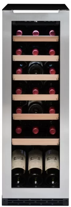 Винный шкаф Avintage вмещает 24 бутылки стандартного объема 0,75 л. Встраивается в нишу, но может устанавливаться отдельно. В камере единая температурная зона с диапазоном 5-20 градусов, в которой можно держать разные сорта. В комплекте поддон, в который стекает собирающаяся влага.