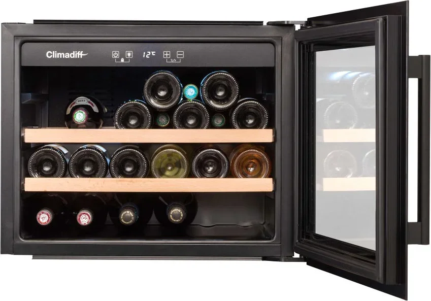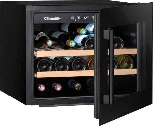Монотемпературный винный шкаф Climadiff CBI28S1B, рассчитанный на 28 бутылок (типа Бордо), позволяет как хранить вина в течение длительного срока, так и готовить их к подаче. Шкаф оборудован перенавешиваемой дверцей, поэтому может быть установлен в любом месте. Благодаря стеклянной двери с
