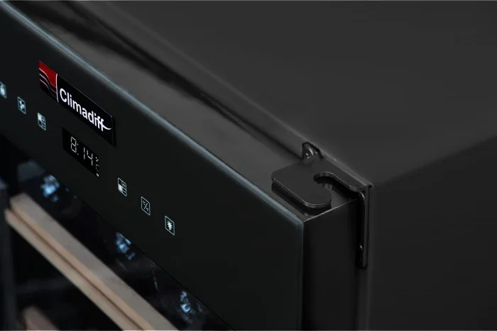 Двухтемпературная конструкция делит камеру на зоны для разных напитков, что позволяет одновременно хранить белые и красные вина при оптимальных параметрах. В верхней секции температура настраивается в диапазоне 5-12 °C, а в нижней — от 12 до 20 °C. Управление сенсорное, с цифровым дисплеем для точной установки значений, поэтому поддержание нужного микроклимата не требует постоянного контроля. Компрессорный тип охлаждения обеспечивает стабильность и быстрый отклик на регулировку.