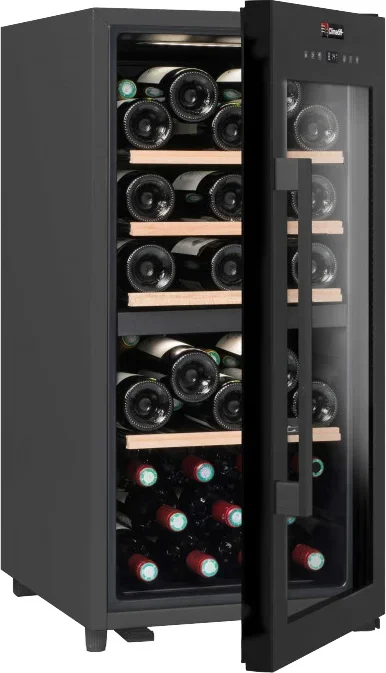 Винный шкаф Climadiff CD41B1 — компактное и элегантное решения для хранения бутылок дома. Черный корпус и дверь со стеклопакетом создают сдержанный внешний вид, который легко вписывается в современный интерьер. Благодаря размерам 85.5×40×54 см прибор не требует много места, его можно установить в нише между шкафами на кухне или в гостиной.