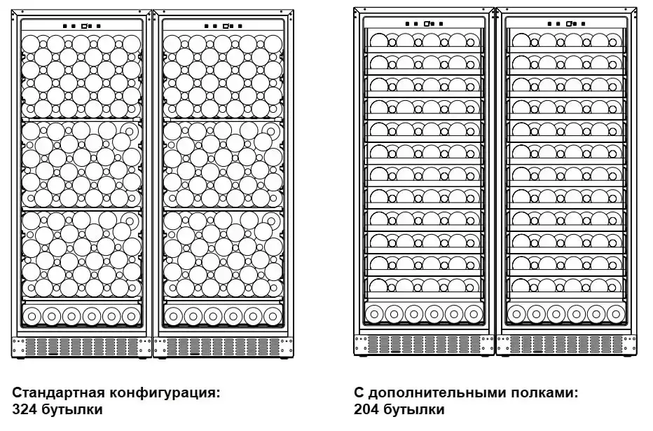 | Вместимость (бутылки 0.75 л) | 324 | |
