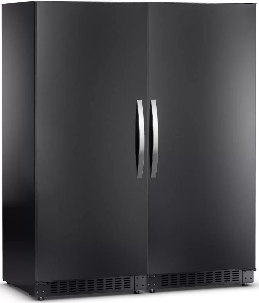Две камеры в технике такого типа встречаются реже, чем в обычных холодильниках, эти приборы чаще всего предназначены для ресторанов или крупных коллекционеров. Охлажденный воздух поступает внутрь благодаря компрессору. Общий диапазон температур, которые можно установить: 5-20 градусов. Средняя влажность воздуха (в процентах), которая поддерживается, чтобы пробки в бутылках не пересыхали: 50-80.