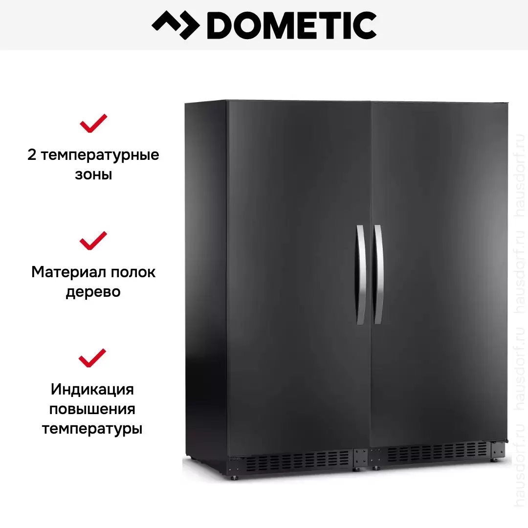 Винный холодильник Dometic B162S Double Basic имеет две температурные зоны, в которых одновременно можно хранить разные сорта алкоголя и выставлять разные сочетания настроек. Он устанавливается отдельно, что удобно, если у вас есть специальное помещение — кладовая, погреб и т.д. Количество бутылок, которое можно разместить с учетом полной комплектации и из расчета объема бутылки 0,75 л, — 324 шт.