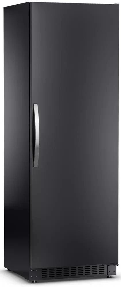 Глухая дверь без стекла надежно защищает вино от влияния ультрафиолетовых лучей, которые проникают, если шкаф находится в солнечной комнате. Это гарантирует также герметичное хранение. Цвет корпуса — черный. Дверь можно перевесить на другую сторону, поэтому вариантов размещения его в доме становится больше.