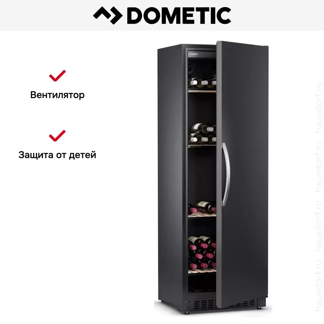 Винный холодильник Dometic B195S Basic имеет одну температурную зону, в которой можно разместить бутылки и единовременно выставить только одну комбинацию настроек. Он устанавливается отдельно, что удобно, если у вас есть специальное помещение — кладовая, погреб и т.д. Количество бутылок, которое можно разместить с учетом полной комплектации и из расчета объема бутылки 0,75 л, — 195 шт.
