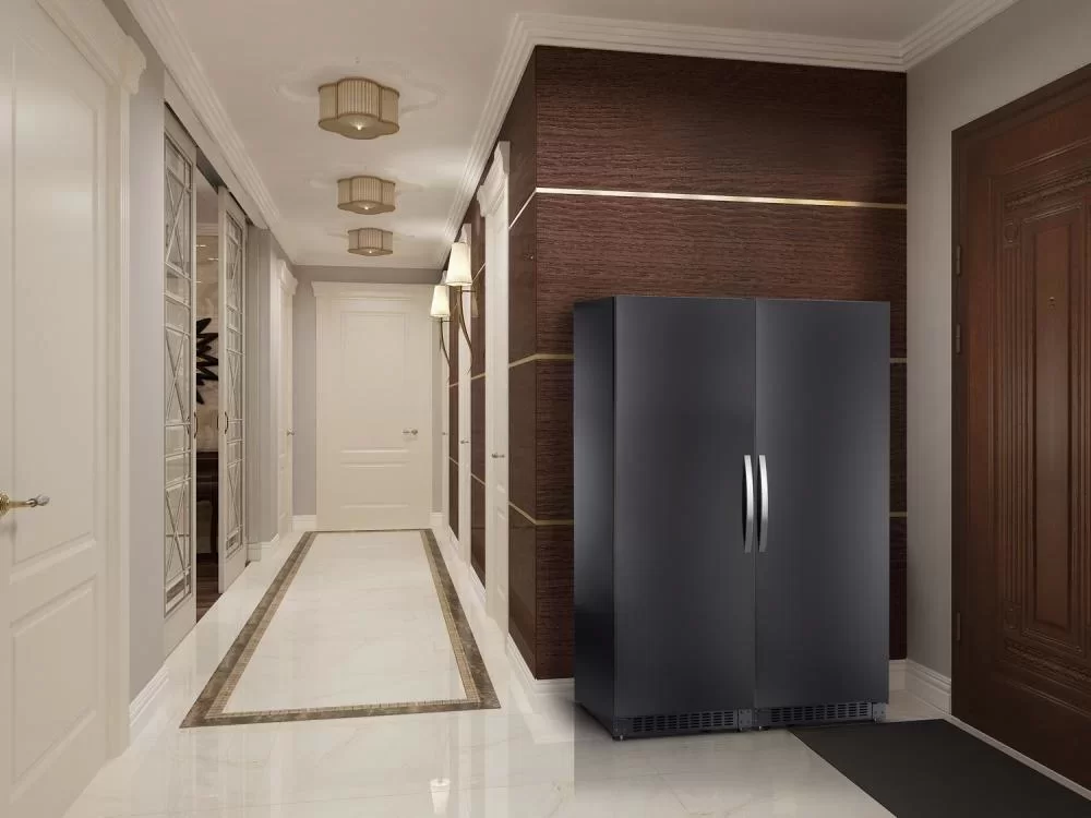 Две камеры в технике такого типа встречаются реже, чем в обычных холодильниках, эти приборы чаще всего предназначены для ресторанов или крупных коллекционеров. Охлажденный воздух поступает внутрь благодаря компрессору. Общий диапазон температур, которые можно установить: 5-20 градусов. Средняя влажность воздуха (в процентах), которая поддерживается, чтобы пробки в бутылках не пересыхали: 50-80.