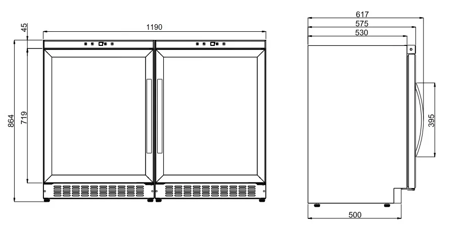 Две камеры в технике такого типа встречаются реже, чем в обычных холодильниках, эти приборы чаще всего предназначены для ресторанов или крупных коллекционеров. Охлажденный воздух поступает внутрь благодаря компрессору. Общий диапазон температур, которые можно установить: 5-20 градусов. Средняя влажность воздуха (в процентах), которая поддерживается, чтобы пробки в бутылках не пересыхали: 50-80.