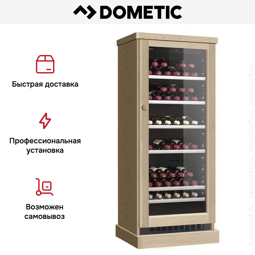 Винный холодильник Dometic C101G Wooden Beech имеет одну температурную зону, в которой можно разместить бутылки и единовременно выставить только одну комбинацию настроек. Он устанавливается отдельно, что удобно, если у вас есть специальное помещение — кладовая, погреб и т.д. Количество бутылок, которое можно разместить с учетом полной комплектации и из расчета объема бутылки 0,75 л, — 101 шт.