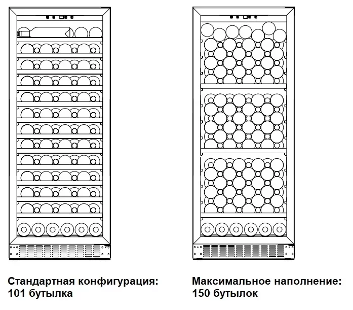 | Вместимость (бутылки 0.75 л) | 101 | |