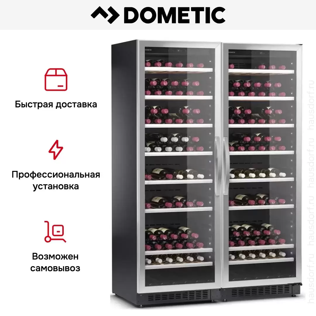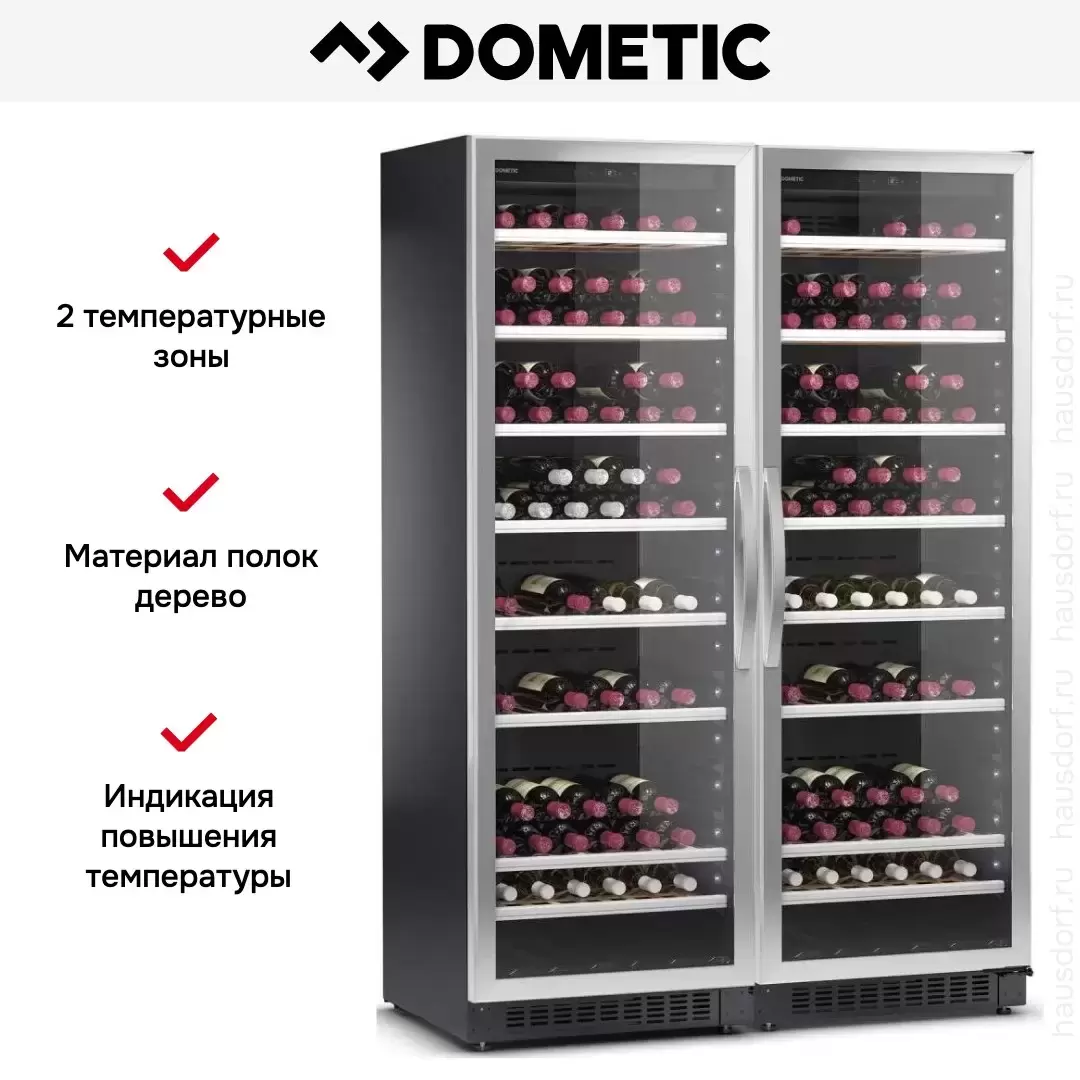 Винный холодильник Dometic C125G Double Classic имеет две температурные зоны, в которых одновременно можно хранить разные сорта алкоголя и выставлять разные сочетания настроек. Он устанавливается отдельно, что удобно, если у вас есть специальное помещение — кладовая, погреб и т.д. Количество бутылок, которое можно разместить с учетом полной комплектации и из расчета объема бутылки 0,75 л, — 250 шт.