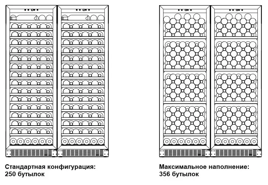 | Вместимость (бутылки 0.75 л) | 250 | |