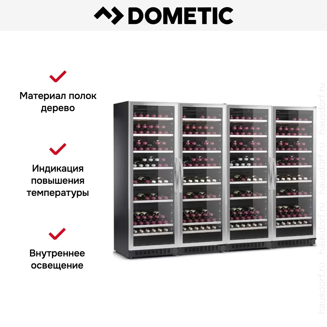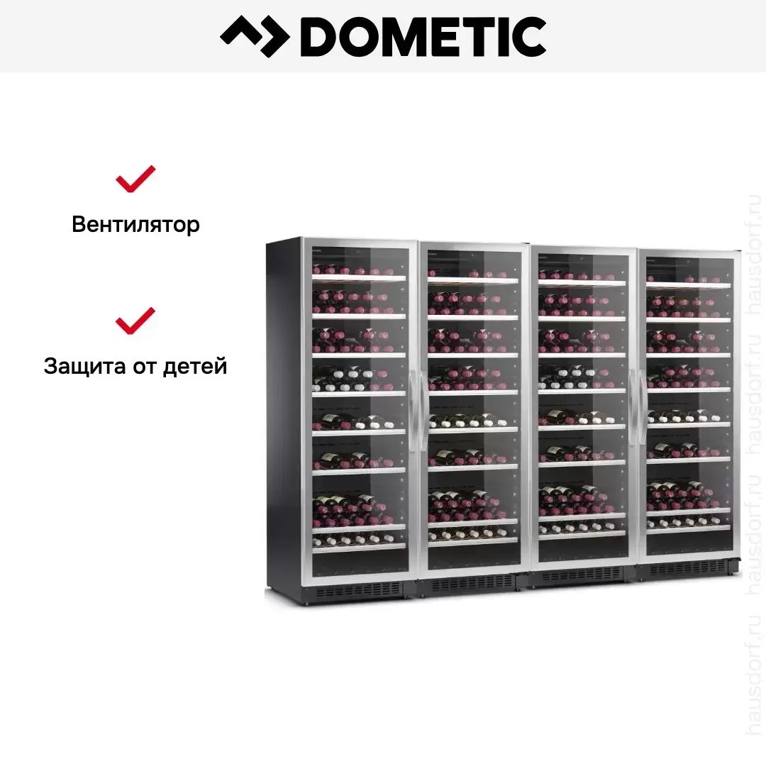 Винный холодильник Dometic C125G Quattro Classic имеет две температурные зоны, в которых одновременно можно хранить разные сорта алкоголя и выставлять разные сочетания настроек. Он устанавливается отдельно, что удобно, если у вас есть специальное помещение — кладовая, погреб и т.д. Количество бутылок, которое можно разместить с учетом полной комплектации и из расчета объема бутылки 0,75 л, — 500 шт.