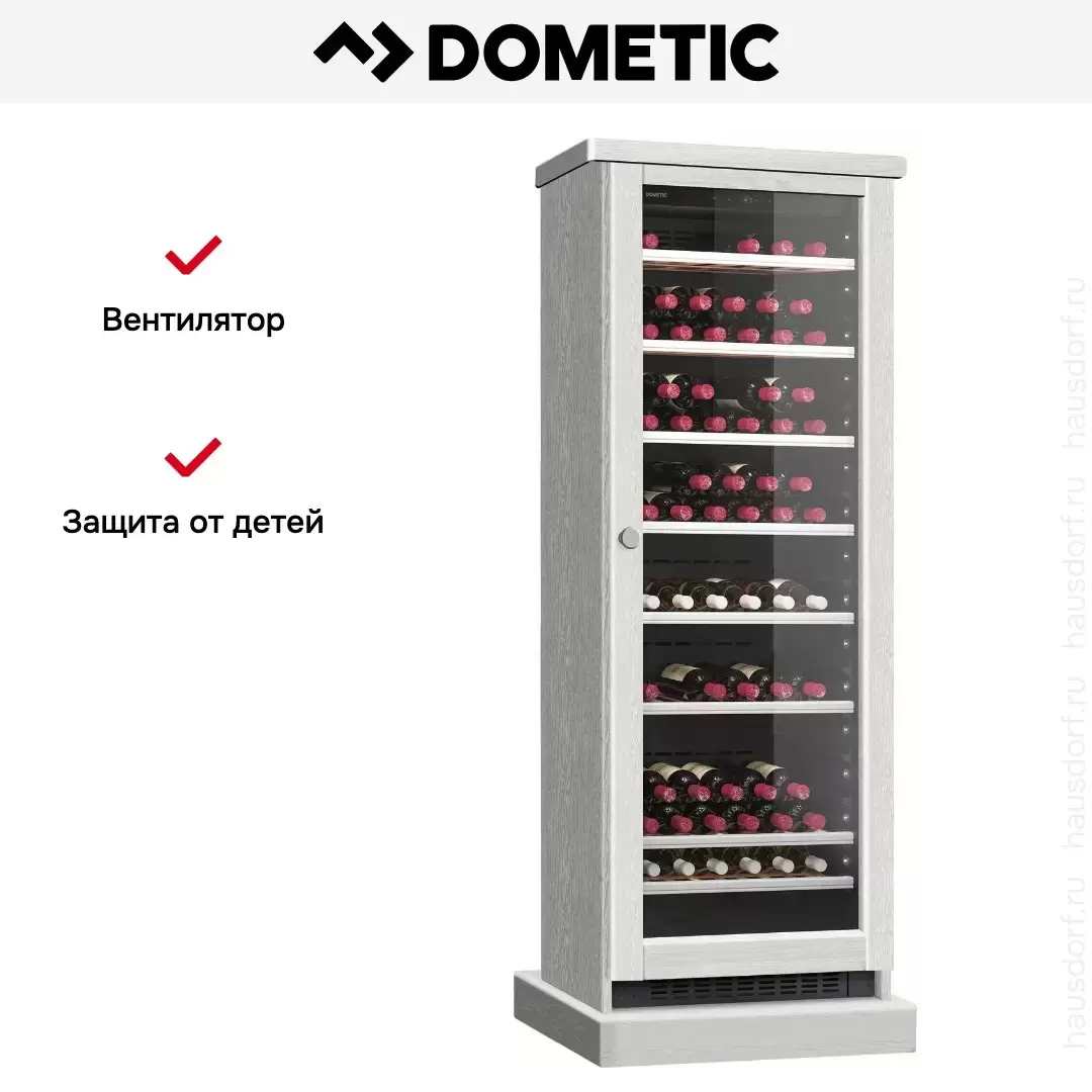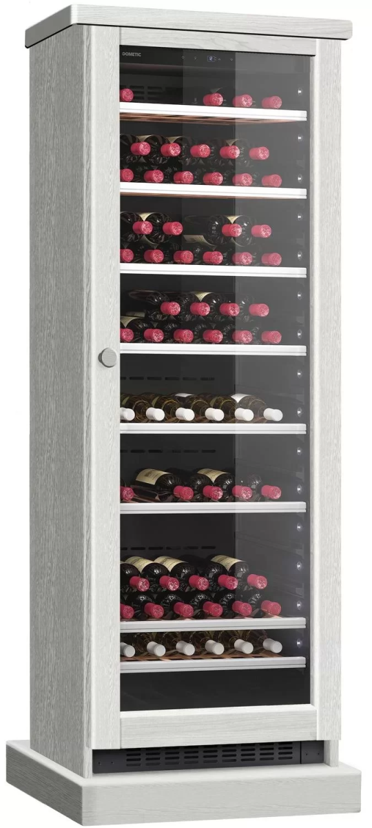 Винный холодильник Dometic C125G Wooden Loft White имеет одну температурную зону, в которой можно разместить бутылки и единовременно выставить только одну комбинацию настроек. Он устанавливается отдельно, что удобно, если у вас есть специальное помещение — кладовая, погреб и т.д. Количество бутылок, которое можно разместить с учетом полной комплектации и из расчета объема бутылки 0,75 л, — 125 шт.