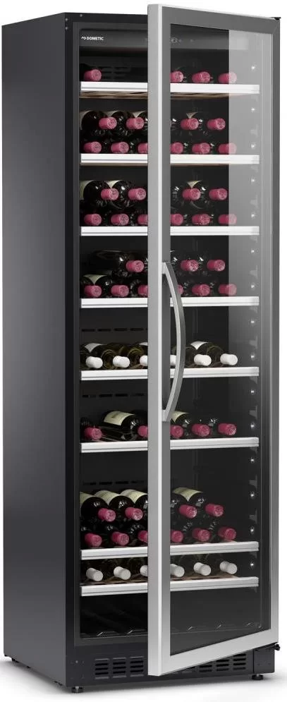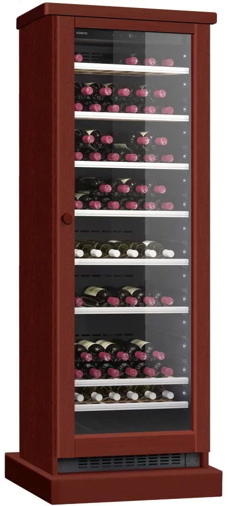 Винный холодильник Dometic C125G Wooden Mahogany имеет одну температурную зону, в которой можно разместить бутылки и единовременно выставить только одну комбинацию настроек. Он устанавливается отдельно, что удобно, если у вас есть специальное помещение — кладовая, погреб и т.д. Количество бутылок, которое можно разместить с учетом полной комплектации и из расчета объема бутылки 0,75 л, — 125 шт.